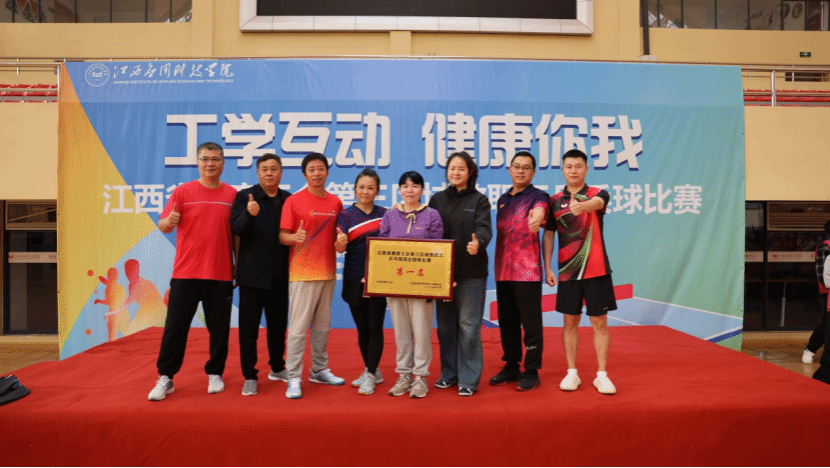 10月25日,江西省第三区域教职工乒乓球比赛在江西应用科技学院举行。我校乒乓球代表队凭借精湛的球技、默契的配合和顽强的球风从众多参赛队伍中脱颖而出,夺得团体第一名的好成绩,实现了历史性突破,为学校赢得了荣誉,也展现了新时代教育工作者的风采。