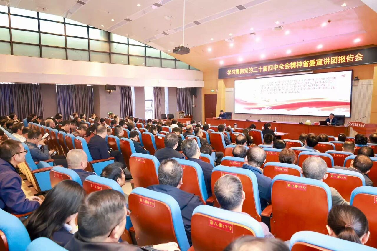 11月14日下午,学习贯彻党的二十届四中全会精神省委宣讲团报告会在我校举行,省委宣讲团成员、省社会科学院党组书记陈运平作宣讲报告。