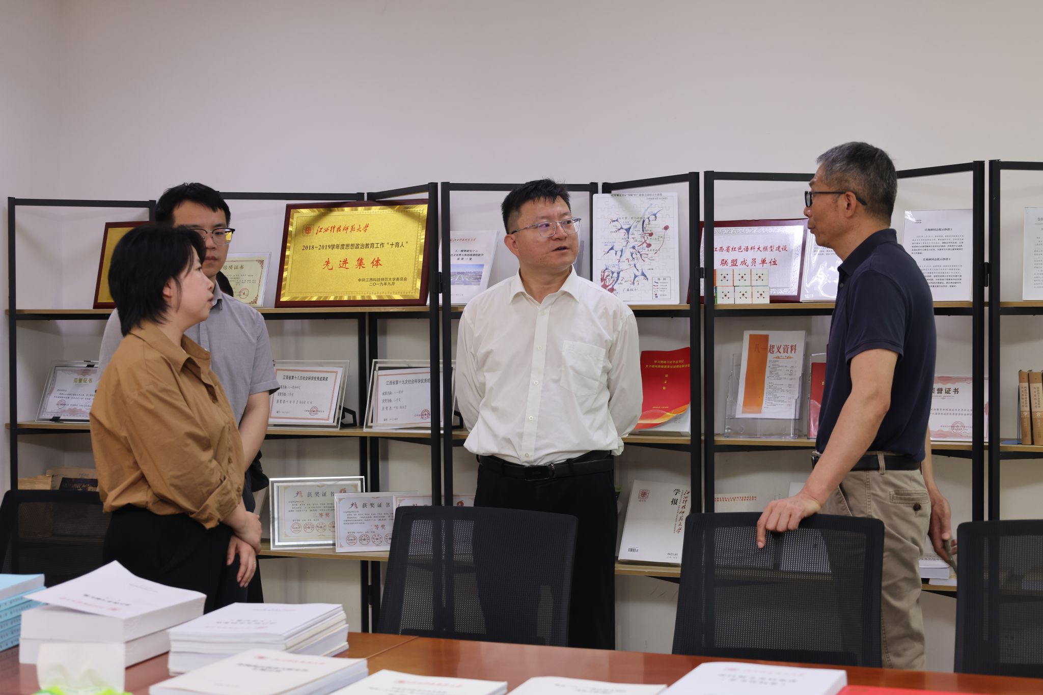 赵鑫华一行先后参观了创新创业学院、学校教育教学成果展及红色文化教育基地,对学校在创新创业教育、校园文化建设及红色基因传承方面取得的成果给予了高度评价。