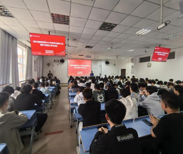4 月 21 日下午,材料与能源学院在红角洲校区 3401 智慧教室召开 2025 年度学生表彰大会暨 2026 年学风建设动员大会。学院党委书记向军淮、院长李文魁、副院长艾建平、全体辅导员、获奖学生及学生代表共计 160 余人参加会议。学院党委副书记赵令智主持。