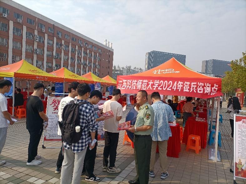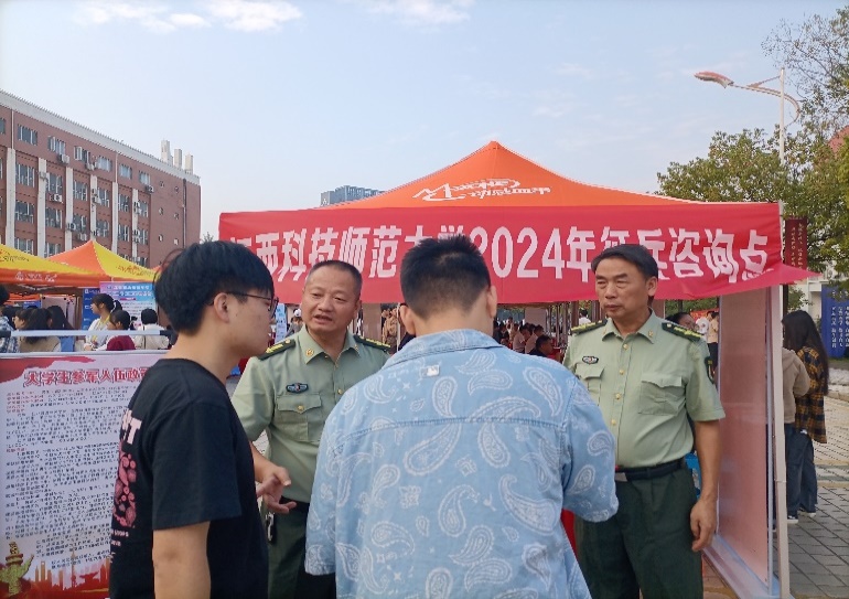 11月5日上午,校人民武装部以学校2024届毕业生秋季大型供需见面会为契机,在红角洲校区弘德楼北广场招聘会现场设置征兵咨询台,大力开展征兵宣传和咨询活动。