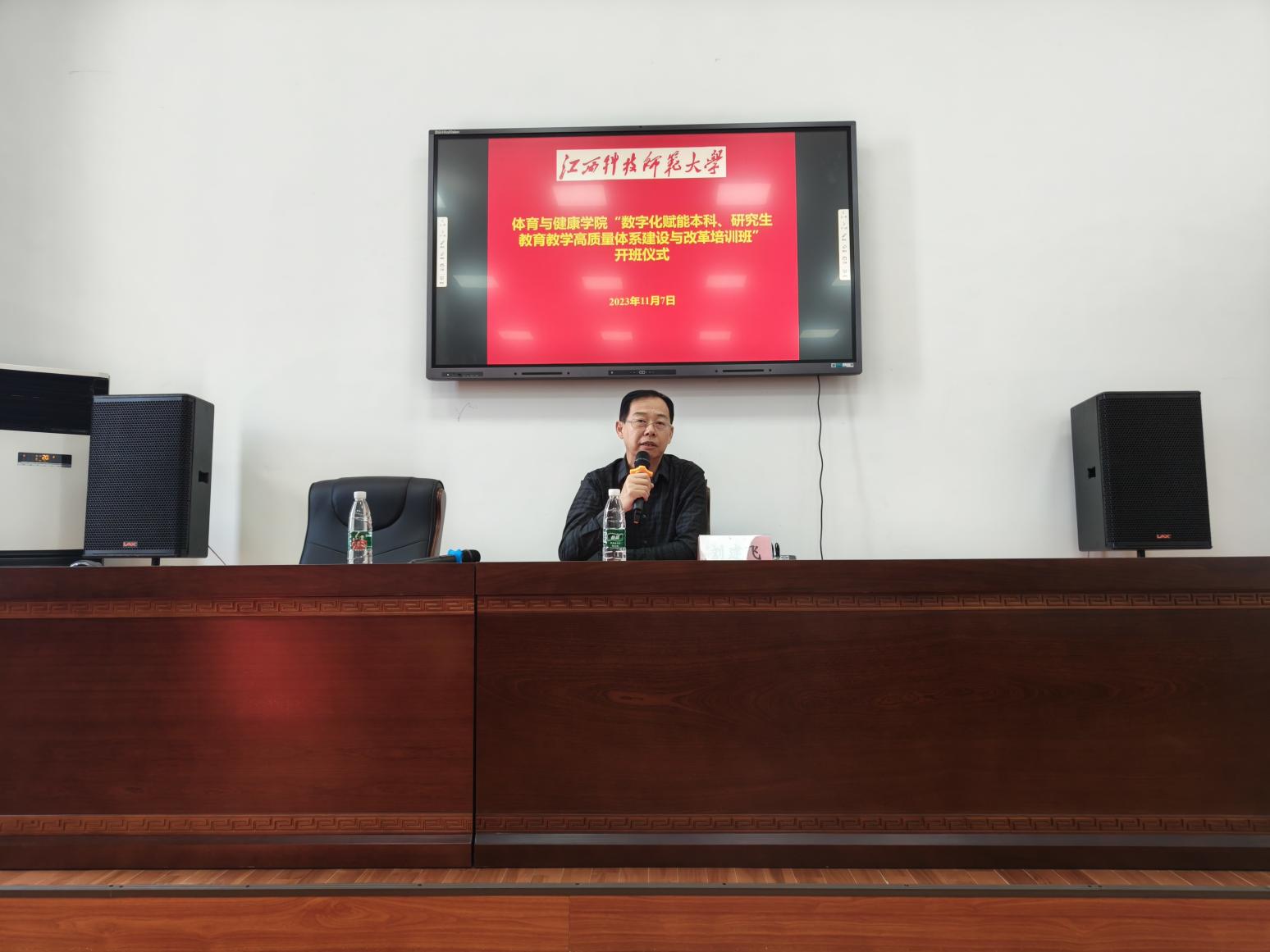 11月7日下午,体育与健康学院“数字化赋能本科、研究生教育教学高质量体系建设与改革培训班”在体育馆401报告厅举行。校党委委员、副校长刘建飞出席开幕式并讲话。