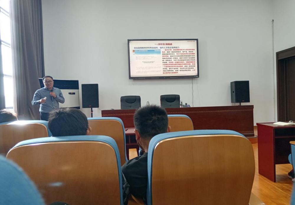 刘建飞解读了学校“科技师大1号工程”和“数字化赋能本科、研究生教育教学高质量体系建设与改革”,分析了其对学校发展、学院发展和教师发展的意义和价值、重要性和必要性。他指出,在新时期学科建设和教学改革中,每位老师都是参与者、见证者、奋斗者、贡献者。针对本次培训班,刘建飞提出三点期望:一是希望全体教职工提高对学科建设、教学管理的认识,积极支持学院改革;二是希望大家加强学习,谨防思想僵化,能力退化,强化专业知识的学习;三是希望大家积极参与,主动投身到学科建设、学科评估和教学改革中去,只有各二级学院的工作有效落地,才能更好地推动学校发展。