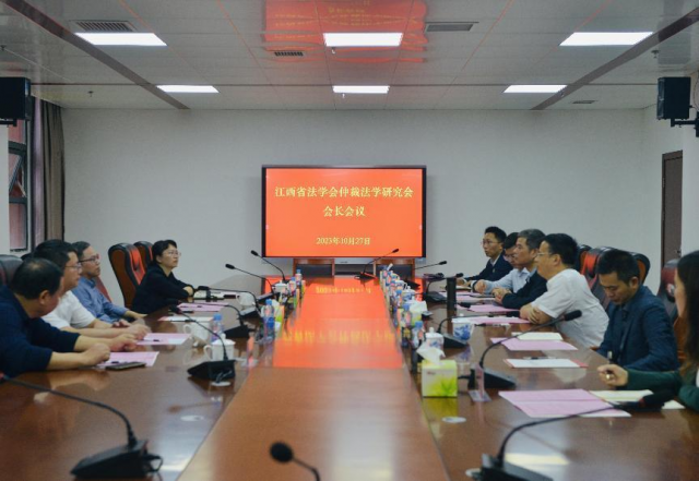 10月27日下午,江西省法学会仲裁法学研究会会长办公会议在学校图书馆940会议室召开。江西省高级人民法院民四庭彭海鹏庭长、江西省人民检察院第七检察部龚永斌主任、江西省司法厅公证仲裁工作处兼立法二处处长方桂梅、南昌大学郑剑教授、江西财经大学欧阳君君教授、江西师范大学宗志翔教授、江西科技师范大学罗时贵教授等法学专家、学者16人与会。校党委书记裴鸿卫,校党委委员、副校长李玉保出席。