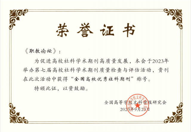 教育学部期刊社现公开出版《职教论坛》《江西科技师范大学学报》《地方文化研究》等期刊。《职教论坛》是江西科技师范大学主管、主办的职业教育学术期刊,于1985年创刊,是全国中文核心期刊、RCCSE中文核心学术期刊,2023年9月获“全国高校优秀社科期刊”荣誉称号。