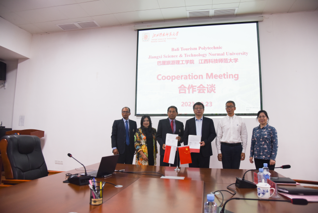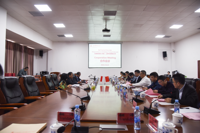 巴厘旅游理工学院来宾对学校热情接待表示感谢,介绍了巴厘旅游理工学院的发展历程、优势学科与特色学科等情况,并希望两校未来开展多层次、多领域合作交流,促进两校教育事业共同发展。