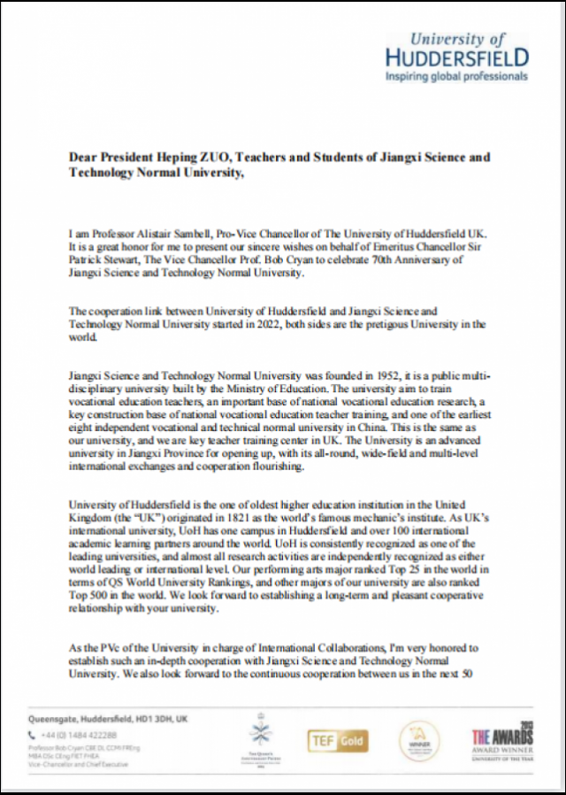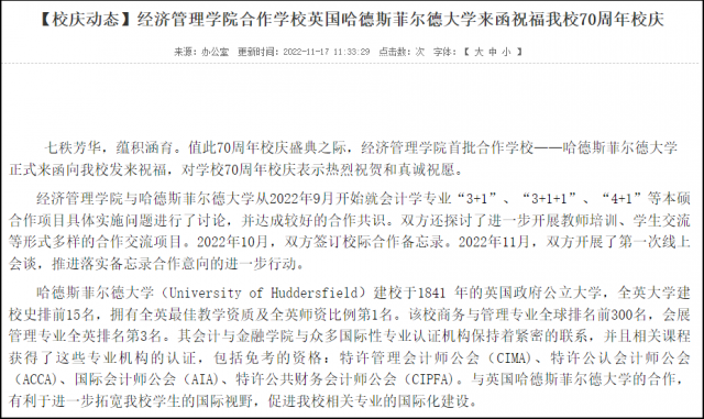 五年来,学院党委围绕开放办学,不断加强统筹谋划,创新工作举措,以构建高层次合作平台为引领,以开展高水平交流合作为纽带,在学校国际合作与交流处指导下,着力搭建与国际大学合作网络,不断拓展合作空间,推动学生境外培养和交流,大力引进国际高水平智力资源,深化务实合作,推动学院对外合作交流与开放办学事业的发展。2022年10月,学院与建校于1841年的英国政府公立大学哈德斯菲尔德大学正式签订校际合作备忘录,在教师培训、“3+1”、“3+1+1”、“4+1”等本硕合作项目达成较好合作共识,为学院国际化办学再开新局。