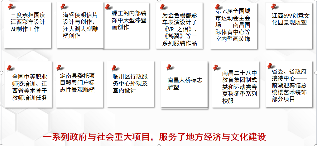 学院党委坚持“以党建为引领,立足专业特色,助推社会服务”工作思路,学科团队紧紧围绕服务国家、服务民生、乡村振兴这一主线,在社会服务方面改革创新,取得了系列具有示范意义的成果和经验。先后承担了国庆彩车设计、汪大渊广场雕塑设计、海昏侯文创产品设计、滕王阁二次改造提升主阁内部展陈设计、广东南台山大佛寺仿古建筑设计等重大工程,既弘扬优秀文化,促进社会主义精神文明建设,又为区域经济发展作出较大贡献。