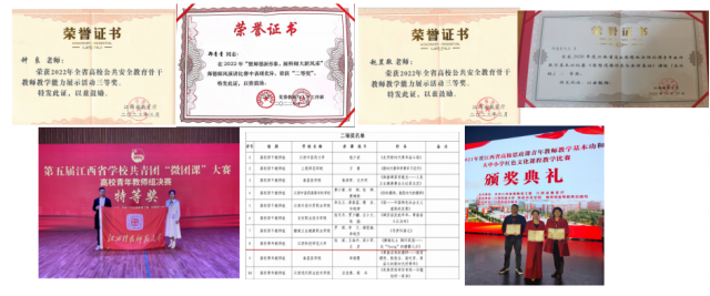 学院以“问题式专题化”教学改革为抓手,推进教学改革提质增效。近年来,获得江西省优秀教学成果一等奖、二等奖5项;江西省高水平教学团队1项;江西省精品资源共享课程、精品在线开放课程、混合式一流本科课程、优质课程8项、国家高等教育智慧教育平台收录2门课。全省思政课青年教师教学基本功大赛一等奖10项,二等奖12项;赣、粤、琼、桂、滇五省青年教师教学联赛二等奖1项、三等奖1项;多人次获得全省思政课青年教师教学能手;全省思政课优秀教案10余项。《思想道德修养与法律基础》《形势与政策》两门省级精品在线开放课也于2020年被省教育厅高校思想政治工作资源库作为优质课收录,《思想道德修养与法律基础》获省优质课三等奖,学校线上教学优秀案例。