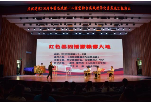 学院坚持将一二课堂融合,有机衔接专业教学,创新性设置思政课第二课堂,凝练“‘两课’融合‘五台’并举”的思路举措,不断推动思政小课堂融入社会大课堂,让思政课教学有声有色、有景有境、有情有义、有滋有味。将红色文化资源育人与马克思主义学科建设相结合,打造学校思政课教学亮点,彰显建军精神、八一精神和方志敏精神育人特色。学院连续多年举办思政课一二课堂融合实践教学成果展演,使广大青年大学生在创作、参演、观看节目的过程中受到教育和启迪,让思政课焕发活力。《“思政小课堂”融入“社会大课堂》《两课融合,五台并举——江西科技师范大学思想政治理论课改革成效显著》《三个结合,打造战“疫”金课》等被中国教育报、江西日报、人民日报网、学习强国、凤凰网、今视频、江西教育等报刊杂志和新闻媒体报道,被新华网、凤凰网、求是理论网、中国网等40家媒体转载。