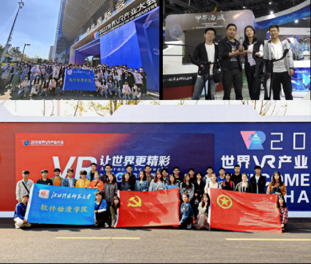 VR学科引领作用更加凸显。学院党委着眼新时代人才培养需求,紧贴市场需求、产业需求科学规划专业,不断优化专业结构。根据江西省下发的《江西省虚拟现实产业发展规划(2019-2023年)》政策文件要求,对计算机科学与技术专业进行升级改造,于2020年作为全省首批开设虚拟现实技术本科专业的院校启动招生,并与泰豪集团深度联接,围绕 VR 专业,辐射带动其他专业,服务VR产业及数字文化产业发展。五年来,学院坚持“内引外联”,将“引进来”和“走出去”相结合,多次组织学生参加世界VR产业大会,协助大会筹备工作组举办会议。学院师生团队专业作品获1项世界VR产业大会金奖,2项世界VR产业大会云峰会VR/AR创新奖,1项世界VR产业大会高校VR课件制作与应用大赛三等奖。
