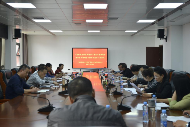 10月13日下午,学校在红角洲校区图书馆940会议室召开“高校党史教育研讨会”筹备工作推进会暨筹备工作领导小组办公室第二次会议。校党委副书记刘国云,校党委委员、副校长刘建飞出席会议。会议由筹备工作领导小组综合组主任叶桉主持,筹备工作领导小组成员单位负责人参加会议。