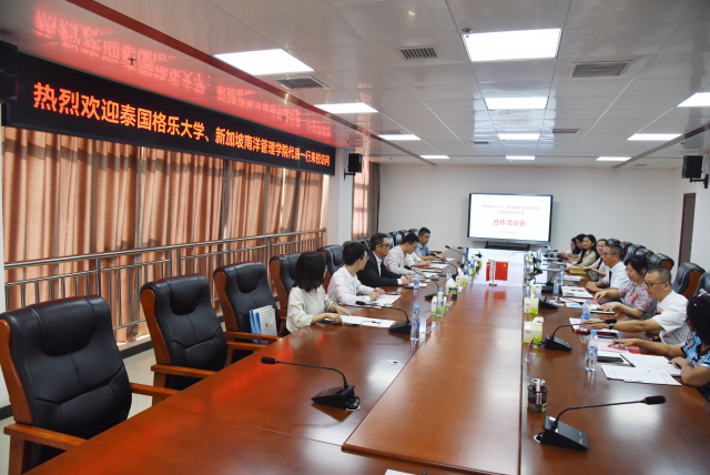 郑鹏武介绍了我校发展特色、学科建设、师资队伍、国际交流等方面的情况。来宾对我校的热情接待表示感谢,并分别介绍了泰国格乐大学和新加坡南洋管理学院的基本情况,重点介绍了办学背景、发展历程与现有的合作交流等情况。与会人员就两校在师生交流、学生联合培养、科研合作等方面的可行性进行了交流。