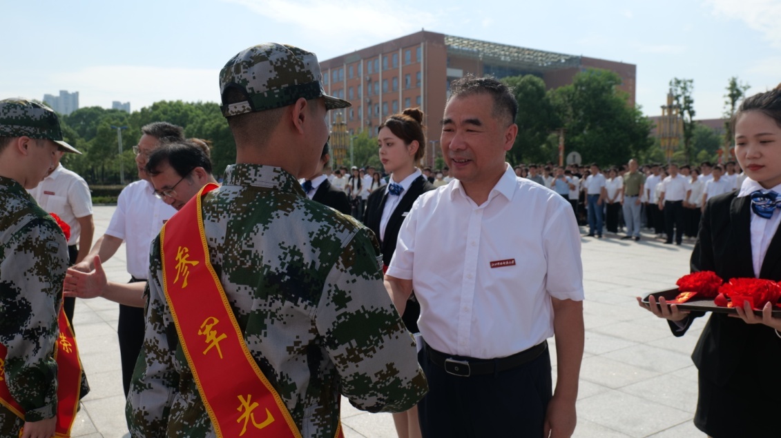 为营造心系国防、支持国防的良好氛围,鼓励我校更多学子踊跃参军报国,9月3日上午,我校“携笔从戎绽放青春”应征入伍学生出征仪式在红角洲校区国旗广场举行。校党委副书记刘国云,校党委委员、副校长朱笃,校党委委员、副校长、武装部长李文龙,党委宣传部,人民武装部,学生工作(部)处,团委等学校征兵工作领导小组成员单位主要成员、相关学院书记出席出征仪式,仪式由李文龙主持。