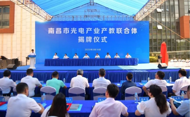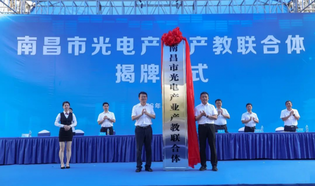 8月18日,由南昌高新区牵头组建的南昌市光电产业产教联合体举行揭牌仪式。市长万广明、教育部职业教育与成人教育司副司长林宇共同为联合体成立揭牌。省委教育工委委员、省教育厅总督学曹伴好,省教育厅二级巡视员杨春年出席仪式。市委常委、区党工委书记王万征主持揭牌仪式。区党工委委员、管委会副主任熊俊,我校党委书记裴鸿卫,江西现代职业技术学院院长廖列法,南昌华勤电子科技有限公司副总裁俸文举参加。
