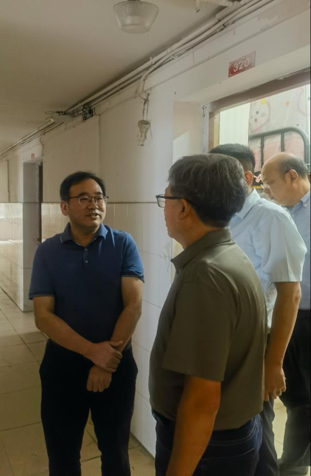 朱笃一行实地查看了学生公寓翻新改造工程的推进情况,对高温酷暑环境下进行施工、管理的一线工作人员表示慰问。朱笃表示,公寓作为学生在校期间的重要生活场所,安全舒适的住宿环境是基本的生活保障,改善学生住宿生活条件,有助于学校进一步发挥环境育人、服务育人、管理育人的重要作用。朱笃强调,开学在即,学生公寓提升改造工程要保质保量按期完成,力争以焕然一新的宿舍环境迎接同学们的到来。