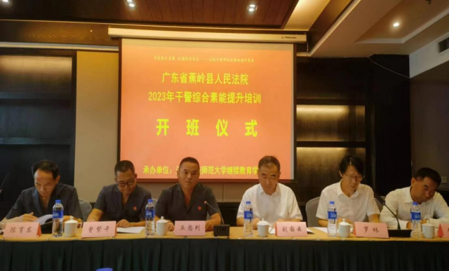 由广东省蕉岭县人民法院与江西科技师范大学继续教育学院联合举办的“广东省蕉岭县人民法院2023年干警综合素能提升培训班”第一期于2023年8月1日上午正式开班。校党委副书记刘国云、继续教育学院院长罗林、校法治与法务中心主任舒伟斌以及蕉岭县人民法院党组副书记、副院长丘忠列、党组成员曾繁干和党组成员、审委会专职委员陈育东出席了开班仪式。