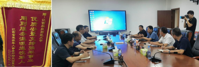 8月7日下午,省退役军人事务厅转移安置处徐享通处长一行莅临我校,就近年来我校优先安置退役军人举措和实施成效,代表省退役军人事务厅和被安置军人表述感谢,同时送上绣有周到服务温暖退役军人,优质安置支持强军事业锦旗,并特别强调这在全省高校是第一次,也是唯一的一次。