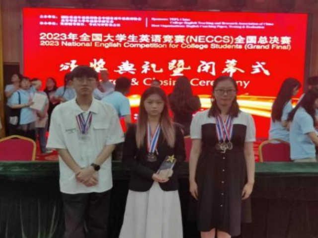 2023年全国大学生英语竞赛(NECCS)全国总决赛于8月2日-6日在宁夏回族自治区银川市举行。来自全国29个省、自治区、直辖市的208所高校的373名选手参加了本届总决赛活动。经过激烈角逐,我省荣获“一等奖2项、三等奖3项。我校2021级经济管理与法学院朱宇晨同学荣获第22届全国大学生英语演讲比赛一等奖和第22届全国大学生英语辩论赛三等奖。这是我省在此次赛事中取得的最好成绩,也是我校在外语学科竞赛中获得的历史性突破。