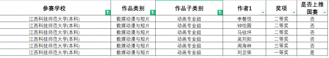 2023年(第16届)中国大学生计算机设计大赛由省赛和国赛两种进阶方式组成,大赛于2023年5月25日采用优中选优的方式在全省604项省赛获奖作品中上推194项作品进入国赛阶段,全省34所高校作品获省赛奖项,数媒与短片作品动画专业组江西赛区有4个作品决战国赛,其中1项为江西科技师范大学美术学院动画专业组作品。