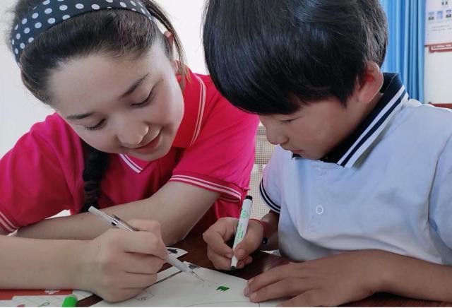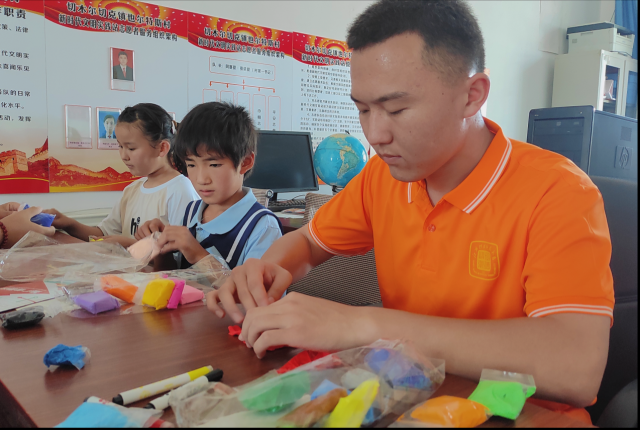 在“发音纠查”课程中,团队成员带领小朋友们进行前后鼻音和平翘舌音的学习,通过绕口令、词语小火车、传声筒等丰富多彩的形式,检验和巩固学习成果,在游戏中讲好普通话。实践队还为小朋友们带来了音乐课、绘画课、黏土手工课等,寓教于乐、寓教于趣,小朋友们手中握着自己的一件件作品,脸上洋溢着喜悦的笑容。此次实践活动激发了也尔特斯村少数民族儿童的学习热情,帮助孩子们提升了普通话表达能力以及发音水平,用实际行动增进民族团结。