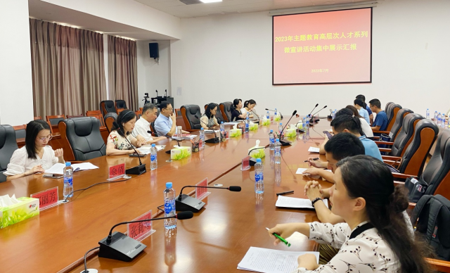 自主题教育活动开展以来,围绕立德树人根本任务推进学校“大思政课”建设,学校启动了高层次人才微宣讲系列活动,充分发挥高层次人才在思政学习和专业融通中的示范和引领作用,推动学习贯彻习近平新时代中国特色社会主义思想主题教育走实走深。7月27日,人事处组织开展了主题教育微宣讲集中展示交流活动,校党委副书记刘国云,校党委委员、副校长刘建飞出席活动并讲话,人事处处长余薇主持。