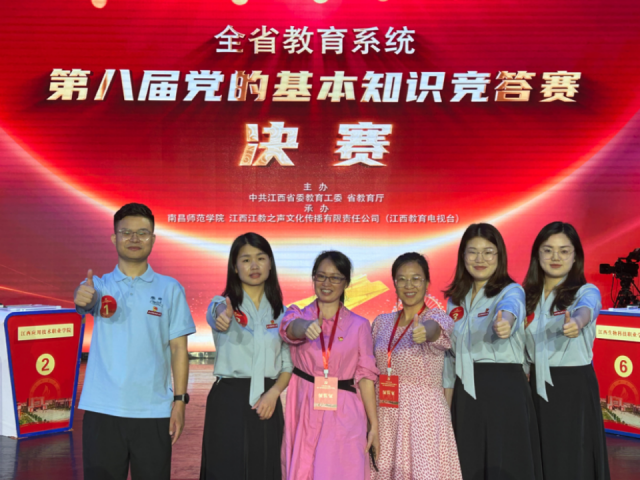 “为党育人铸师魂、为国育才创佳绩”“青春心向党,强国我当先”......一句句铿锵有力的口号,表达着我校师生对党的赤诚情怀和坚定信仰、对国家的无限忠诚和无比热爱。7月1日,江西省教育系统“学思想、强党性、重实践、建新功”第八届党的基本知识竞答赛决赛在南昌师范学院落幕,我校教师组、学生组双双获团体二等奖。