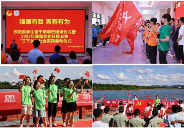 6月25日上午,我校在大学生活动中心二楼举办2023年暑期文化科技卫生“三下乡”社会实践启动仪式。团省委学校部部长甘小平、团省委挂职干部姜继杨出席了本次活动,校团委书记罗燕、校团委全体团干、各学院团委书记代表以及校团委全体学生骨干和学生志愿者代表们参加了本次仪式。本次社会实践活动采用团队和个人相结合、线上和线下相结合的方式进行,校团委在全校范围内组织25支服务团队及数千名“返家乡”学生个人,沿着习近平总书记的重要足迹,从中央红军长征集结出发地——赣州市于都县出发,走进基层、边远地区、社区、农村、军营等开展暑期社会实践活动。活动紧紧围绕科技创新、共同富裕、乡村振兴、文化自信自强、美丽中国建设等热点内容,创新性融入职业教育、铸牢中华民族共同体意识、八一精神、建军精神、红色快板、反诈宣传、法制宣传、国防教育宣传、勤廉教育、乡村振兴、传统文化传承、童心港湾建设、低碳节能、普通话推广、防溺水宣传等学校的重点和特色工作内容,引领广大青年学生用脚步丈量祖国大地,用眼睛发现中国精神,用耳朵倾听人民呼声,用内心感应时代脉搏厚植学生对祖国血浓于水、与人民同呼吸共命运的情感,引导学生在实践中深刻领悟“两个确立”的决定性意义,增强“四个意识”、坚定“四个自信”、做到“两个维护”,坚定不移听党话、跟党走。