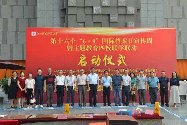 今年6月9日是第十六个国际档案日,为深入贯彻习近平总书记对档案工作的重要指示批示精神,深入推进学习贯彻习近平新时代中国特色社会主义思想主题教育走深走实,在江西省高校档案工作研究会指导下,我校档案馆与南昌航空大学档案馆、华东交通大学档案馆和豫章师范学院档案管理中心联合举行第十六个“6·9”国际档案日宣传周暨主题教育联学联动启动仪式。