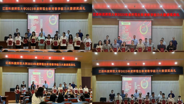 大赛对在2023年度师范生教育教学能力大赛取得优异成绩的选手、先进个人、指导教师以及优秀组织进行表彰。周叶宣读了2023年度师范生教育教学能力大赛的选手获奖名单,朱五福宣读了先进个人、优秀指导教师代表和优秀组织奖名单。大赛共表彰一等奖12人、二等奖30人、三等奖63人。