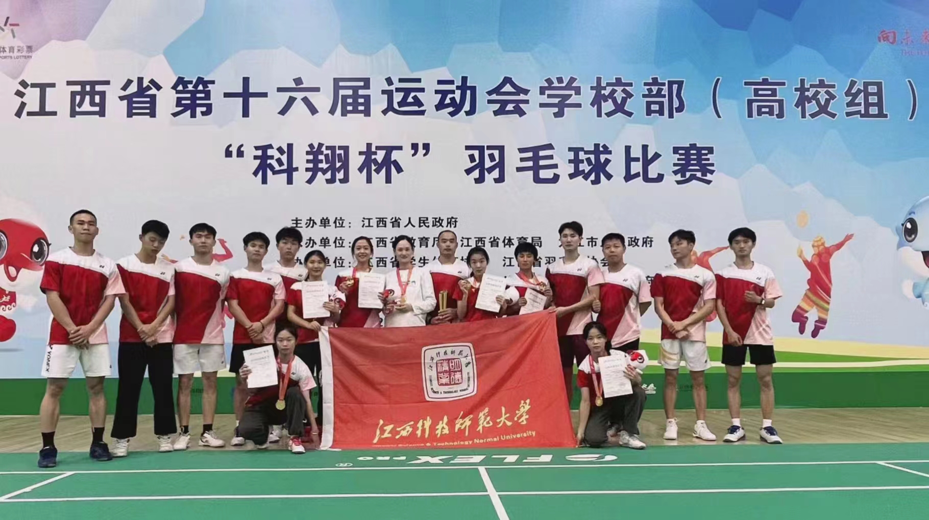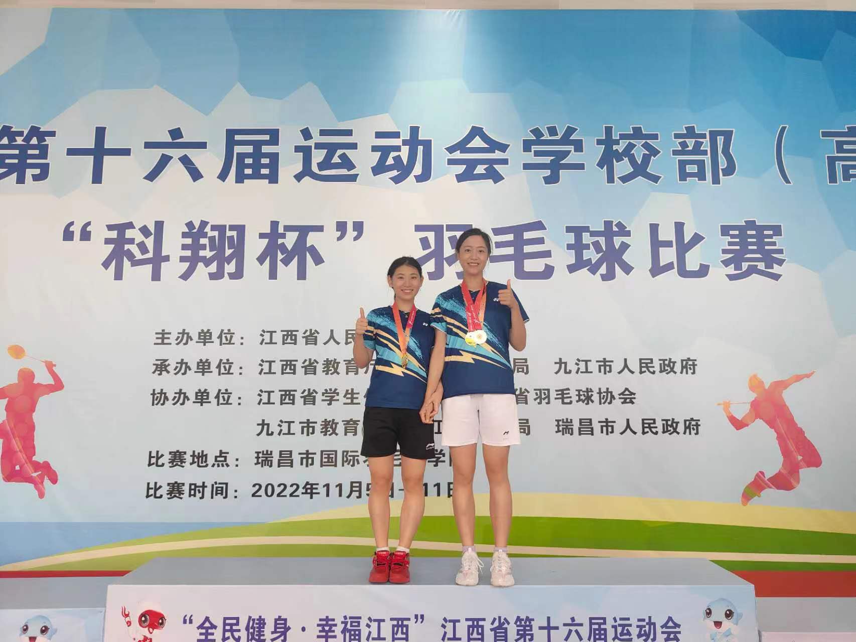 2022年11月5日-11日,江西省第十六届运动会高校部羽毛球(乙组)比赛在瑞昌市国际羽毛球学院举行,我校羽毛球队在杨艳芬、黄秋林老师的带领下经过多轮激烈角逐,获得了女子团体、女子双打、女子单打三枚金牌,男子团体获得第四名。男女两支队伍均创造了校羽毛球队参加省运会的最佳战绩!在此次比赛中,曹嫣芸同学展现出非凡实力,一人独得三枚金牌。