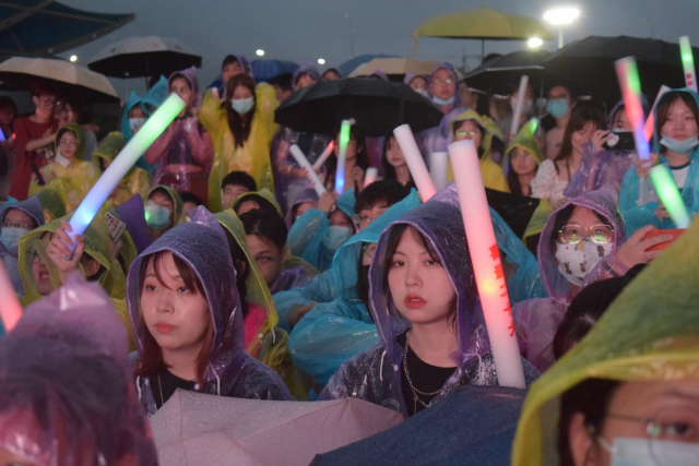 小雨淅沥,歌声如海。晚会现场虽然伴随着一阵阵的细雨,穿着雨衣,手举荧光棒,雨丝微凉,却依然抵挡不了大家的热情,似乎是在用实际行动证明,同学们走上社会后遇到再大再猛烈的风雨,都能够勇敢地去面对。