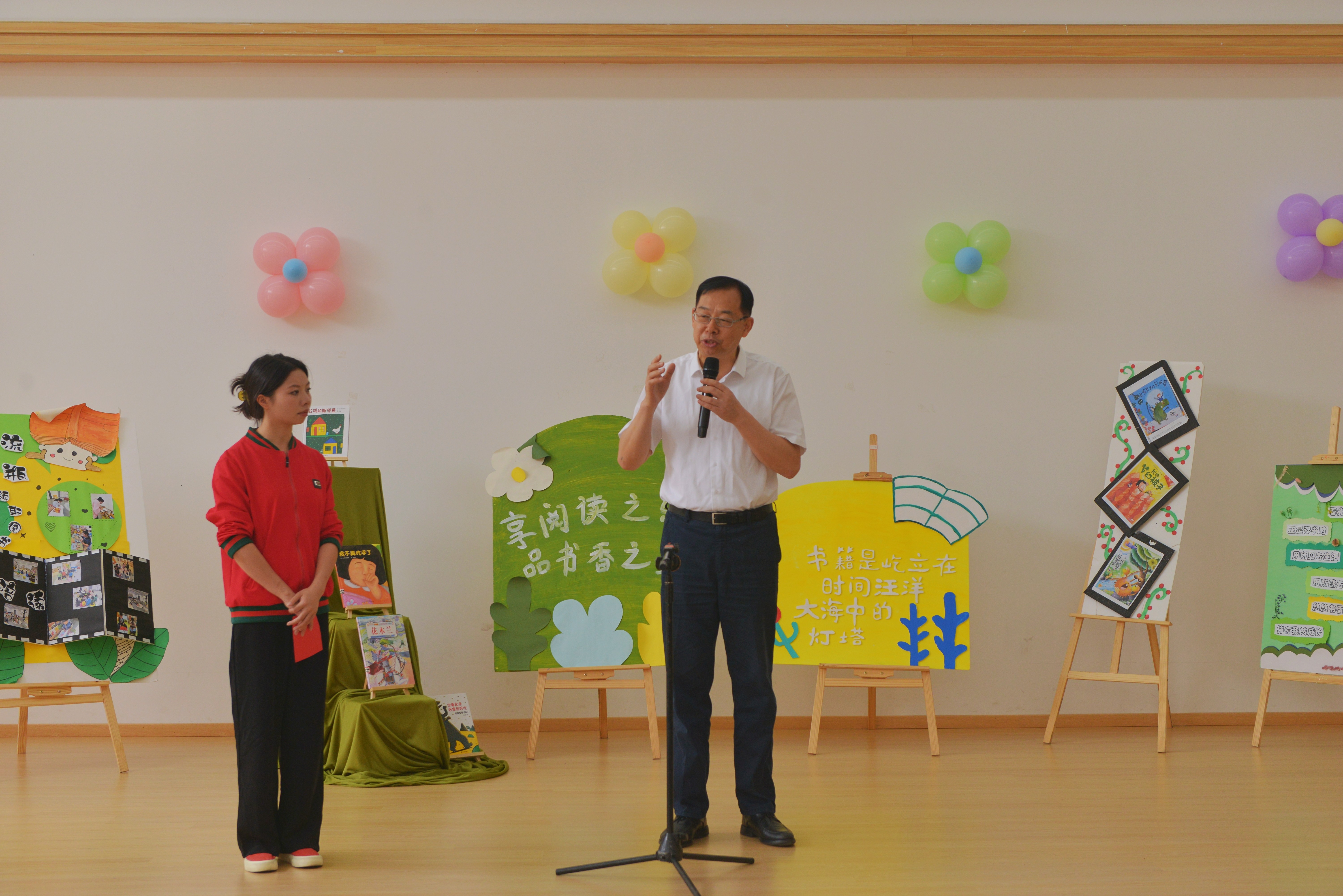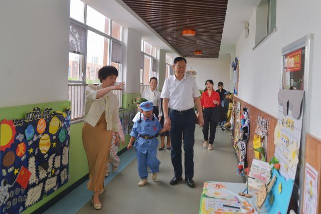 赛前,在小朋友们的带领和介绍下,刘建飞同志牵着孩子们的手,参观了幼儿主题画展板、“一步一景一讲解”、“一本绘本、一段红色故事、走过一年四季”等幼儿手工制作展区,并给孩子们讲述了雷锋和王二小的故事。他语重心长地叮嘱孩子们,“我们要向雷锋叔叔学习,经常关心帮助小伙伴,做一个有爱心的人。我们还要好好学习,增强本领,长大后将祖国建设得更强大!”