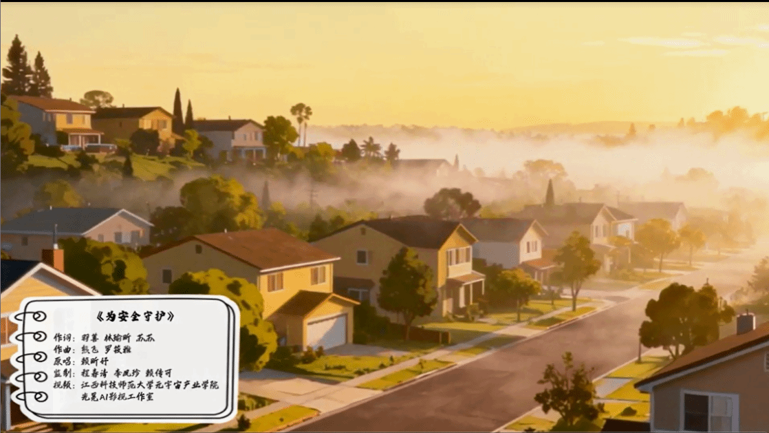 主题歌《为安全守护》创作,由我校行业导师、广东省音乐文学学会副会长羽善指导元宇宙产业学院2024级音表班学生林瑜昕、苏苏组成创作团队,在云南采风期间深入生活,捕捉灵感,共同完成。歌曲旋律由我校音乐学院熊飞、新锐词曲音乐人罗筱雅联袂打造。作品由中国好童声艺术团精彩演绎,并在张敏、杨桃、李俊环三位导师的悉心指导下,完成了高质量的舞台呈现。