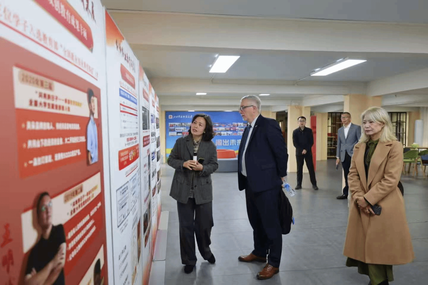 仪式后,研学团在志愿者陪同下参观了美术学院、创新创业学院以及育人成果展。