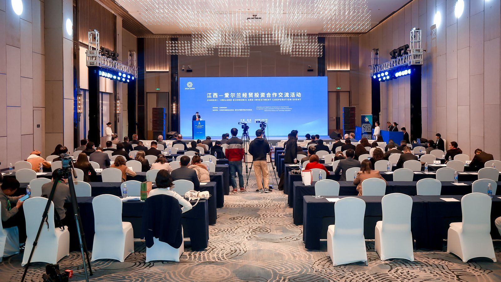中爱双方相关机构、企业代表,江西省商务厅二级巡视员、江西省外商投资企业协会会长陈志民,爱尔兰驻华大使Nicholas O’Brien博士,爱尔兰中国科学技术交流协会、爱尔兰投资发展局中国区总监、爱尔兰贸易与科技局北京代表处、爱尔兰国立科克大学、爱尔兰香农理工大学等机构和学校代表,爱尔兰PVGeneration、爱尔兰Oriel Sea Salt、江铃汽车股份有限公司、林恩茶叶、江西上饶碧源科技有限公司等企业代表参加交流会。