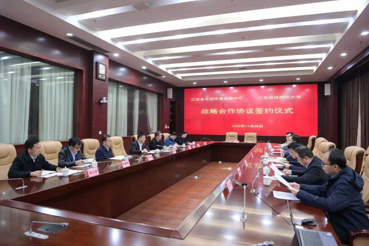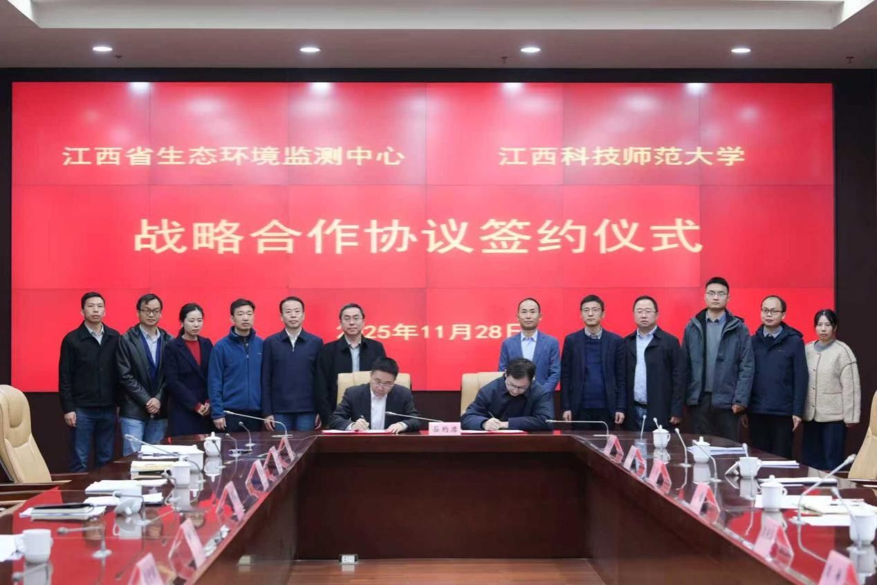 邹寒山对学校长期以来给予的大力支持表示感谢。他指出,双方前期合作已初见成效,学校选派的青年教师深入省生态环境监测中心一线跟岗锻炼,积极参与新污染物治理等实际工作,不仅带来了前沿的创新思维,也形成了具有价值的成果,为双方深化合作奠定了坚实基础。希望以此次协议签署为新起点,聚焦科研协同与人才共育,强化资源共享与优势整合,共同肩负起服务江西高质量发展和生态文明建设的时代使命。