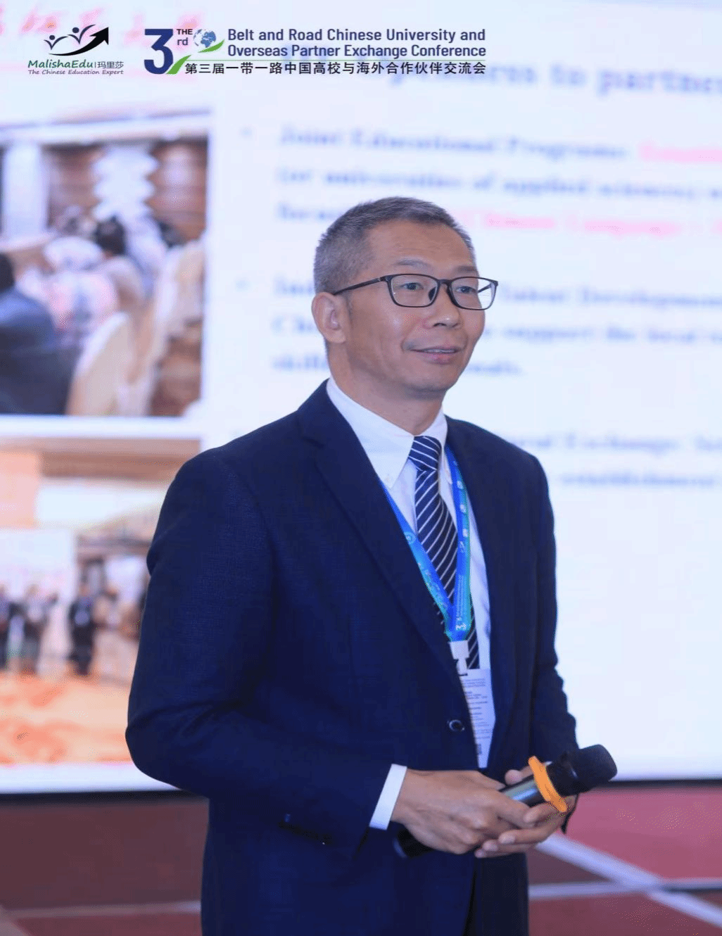 11月26日至28日,第三届“一带一路”中国高校与海外合作伙伴交流会在广州南洋长胜酒店召开。副校长郑鹏武应邀出席“中文+智能培训及职业教育国际化发展研讨会”专场活动并作主题报告。