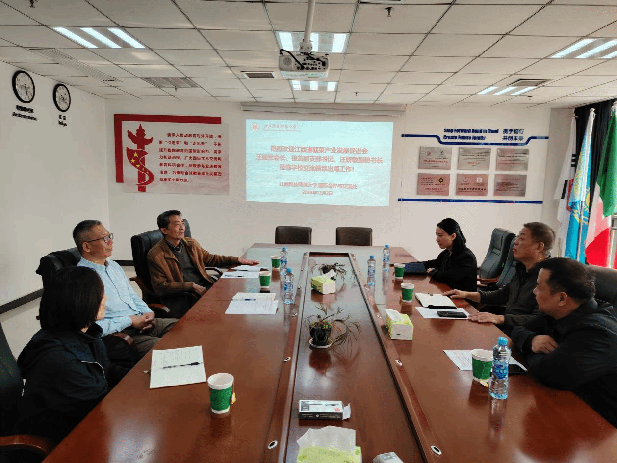 “天工”江西职业教育出海联合体负责人陶暹光教授,江西省赣菜产业发展促进会支部书记徐龙鹏、副秘书长汪妍敏及学校国际合作与交流处相关同志参加座谈。