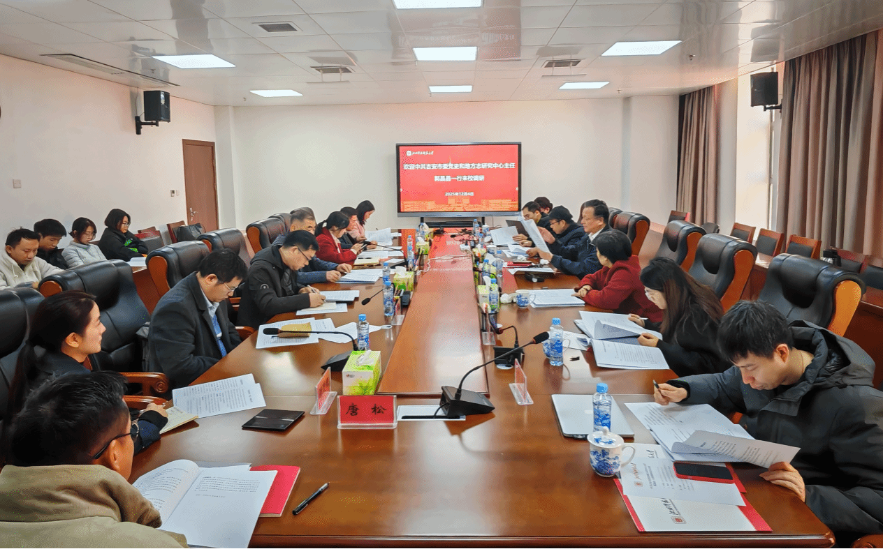 12月4日上午,中共吉安市委党史和地方志研究中心主任郭晶晶一行来校调研交流,座谈会在红角洲校区图书馆第四会议室举行。中国井冈山干部学院原主持日常工作的副院长梅黎明教授,校党委副书记、中共党史党建研究院刘国云教授出席会议。