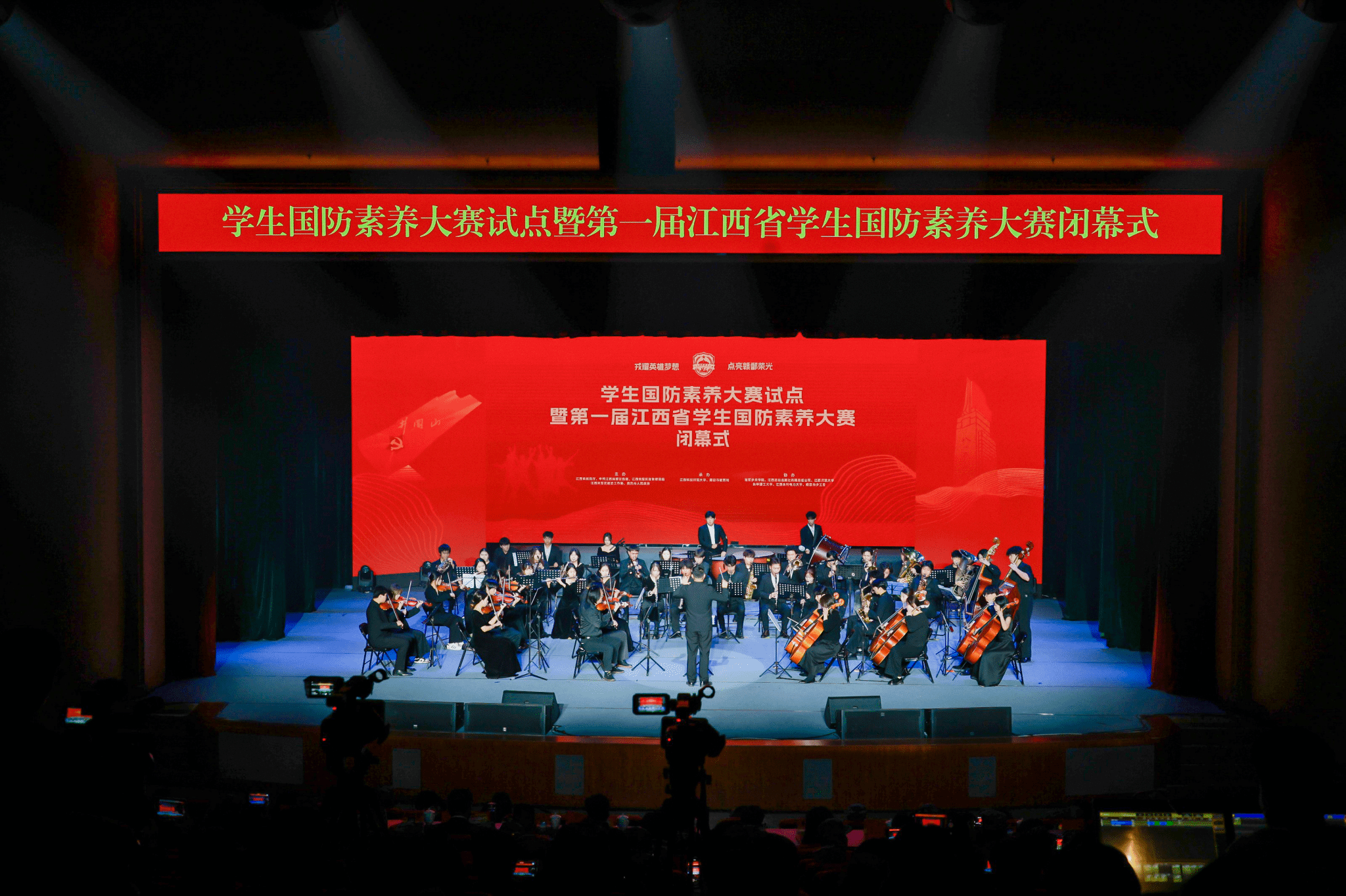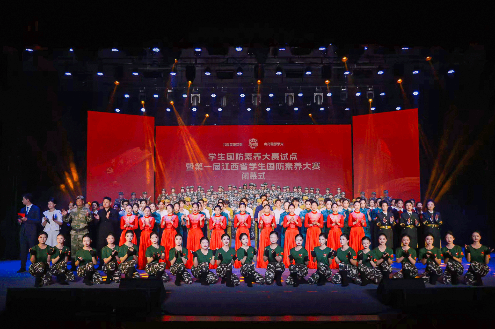 在全场齐唱《强军战歌》的雄壮旋律中,象征国防精神传承的跑旗仪式将现场气氛推向高潮,为大赛画上圆满句号,至此,学生国防素养大赛试点暨第一届江西省学生国防素养大赛圆满落下帷幕。