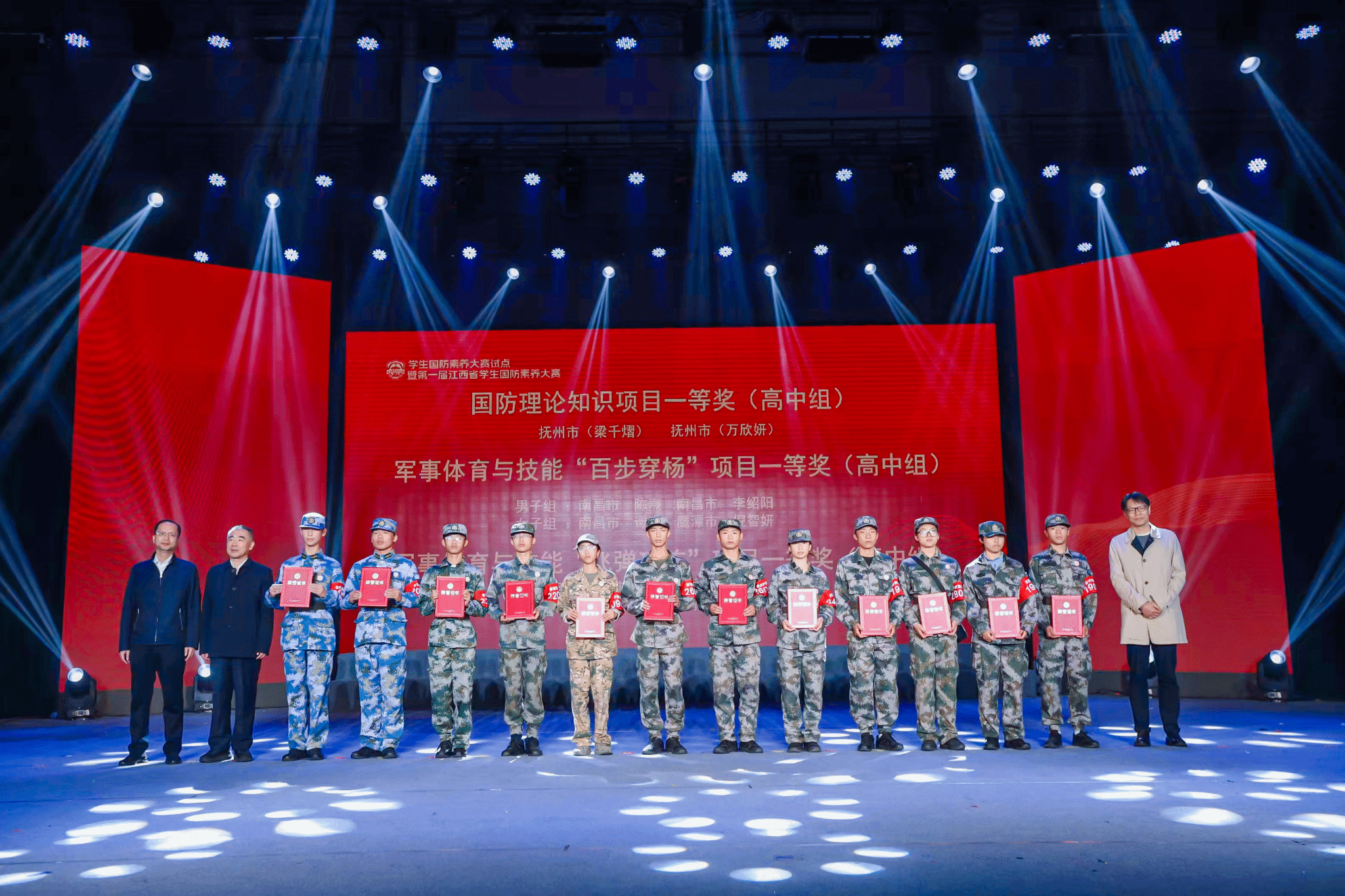 在首轮颁奖前,九江市第七中学带来的国防文化展示节目《巾帼“阅”章》,以刚柔并济的舞蹈语言,展现了新时代女性的飒爽英姿与家国情怀。随后,刘国云、沈栩、谢敬钧为国防理论知识项目、军事体育与技能“百步穿杨”项目和军事体育与技能“飞弹破阵”项目获奖代表颁奖。