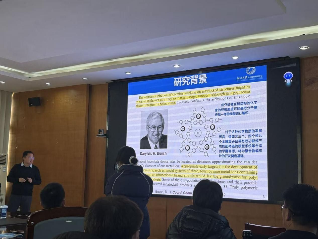 李光锋教授以“分子编织聚合物”为题作学术报告。他指出,这种编织聚合物的构筑机理借鉴了宏观编织材料经纬交错的原理,通过分步聚合策略,使聚氨酯与环氧树脂两类线性聚合物链在不对称缠结构型引导下高效整合。这种设计不仅实现了两种材料在性能上的协同增益与优势互补,同时也深化了结构与功能之间的协同关系。