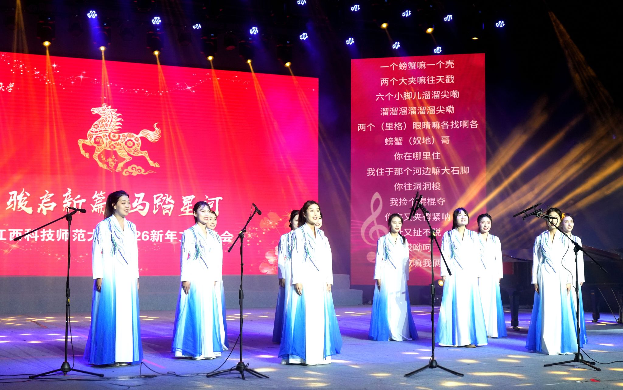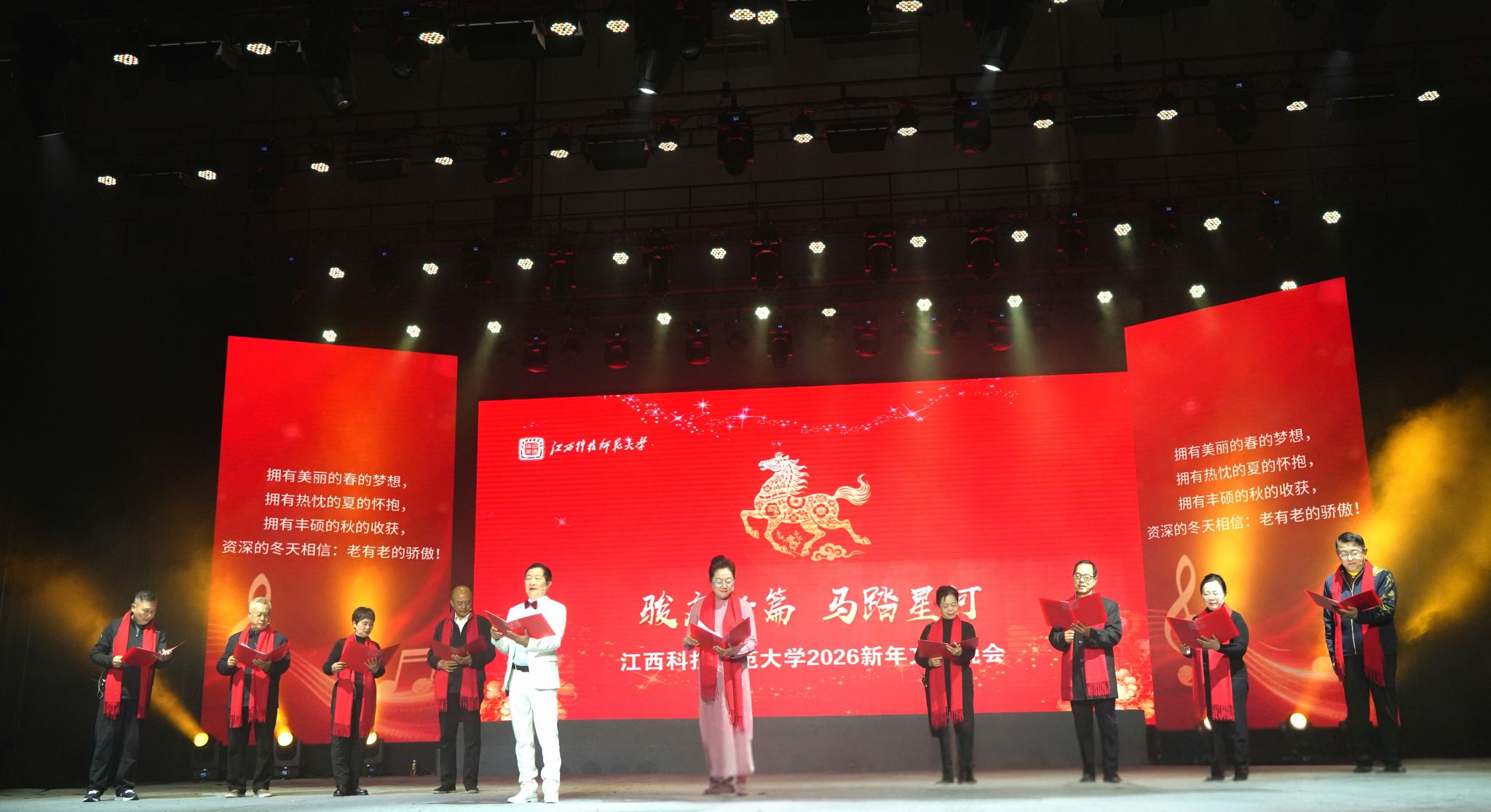 此次新年文艺晚会不仅是一场视听盛宴,更是一次生动的校园文化展示与精神凝聚。它充分体现了学校深厚的文化底蕴、丰硕的美育成果以及师生团结一心、开拓进取的时代风采,激励全体师生在新的一年里,如骏马奔腾,携手共启崭新篇章。