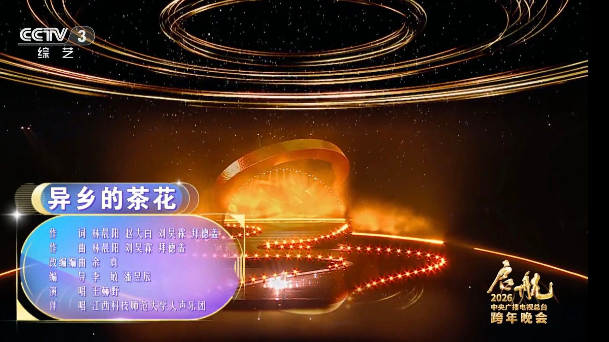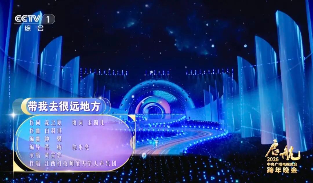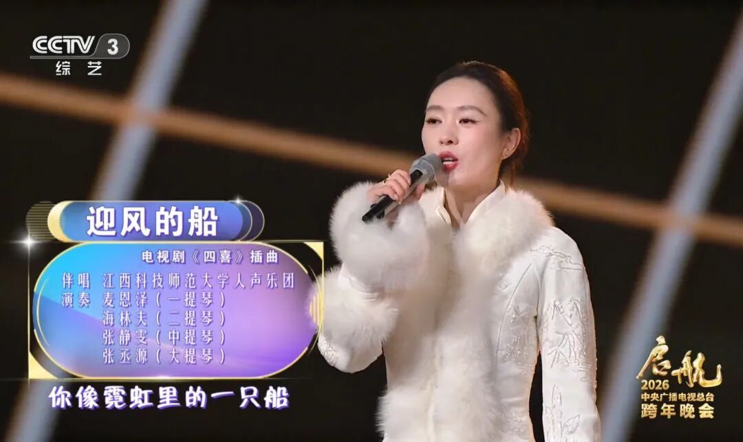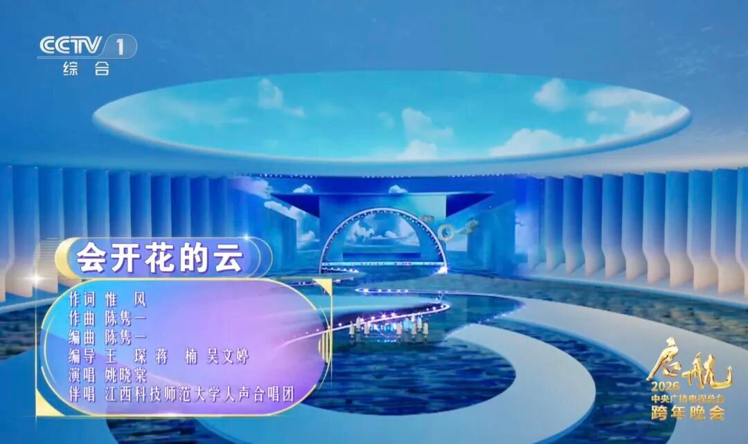 辞旧岁,启新程。12月31日20点,中央广播电视总台《启航2026——中央广播电视总台跨年晚会》在央视综合频道(CCTV-1)、综艺频道(CCTV-3)、音乐频道(CCTV-15)等平台同步播出。作为唯一受邀参演的江西高校,我校音乐学院师生团队精彩演绎了《会开花的云》《想把我唱给你听》《带我去很远地方》《异乡的茶花》《好一点》《迎风的船》六个曲目。