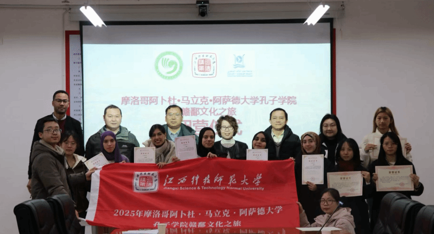 2025年12月28日,为期12天的“魅力汉语 情系赣鄱”摩洛哥阿卜杜·马立克·阿萨德大学孔子学院翻译硕士师生来华研学冬令营在我校举行闭幕仪式。本次冬令营以学术交流为核心、文化体验为纽带,连通上海、南昌、北京三地特色行程,通过专题授课、体验非遗、文化参访等多元形式,让摩洛哥师生在沉浸式体验中触摸中华文脉,在跨文化互动中深化中摩友谊,为两国教育文化交流写下浓墨重彩的一笔。