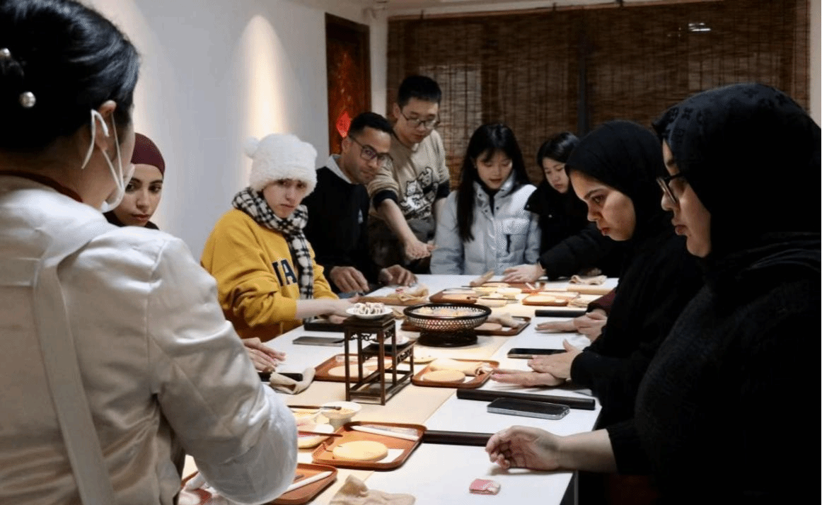 12月23日至25日的中摩文化交流活动堪称非遗盛宴。古典舞的灵动柔美、快板古筝的明快激昂、艾灸养生赢得摩洛哥师生连连赞叹。摩洛哥师生在志愿者指导下亲手尝试剪纸、掐丝手法,在花酥制作体验中感受中式点心的非遗美学,让非遗技艺变得可触可感。王靖林老师带领师生进行武术体验,在一招一式中感受中华传统体育的刚柔之美。交流分享环节,摩洛哥师生踊跃畅谈来华研学的感受,互动问答中满是对东方文化的好奇与向往。