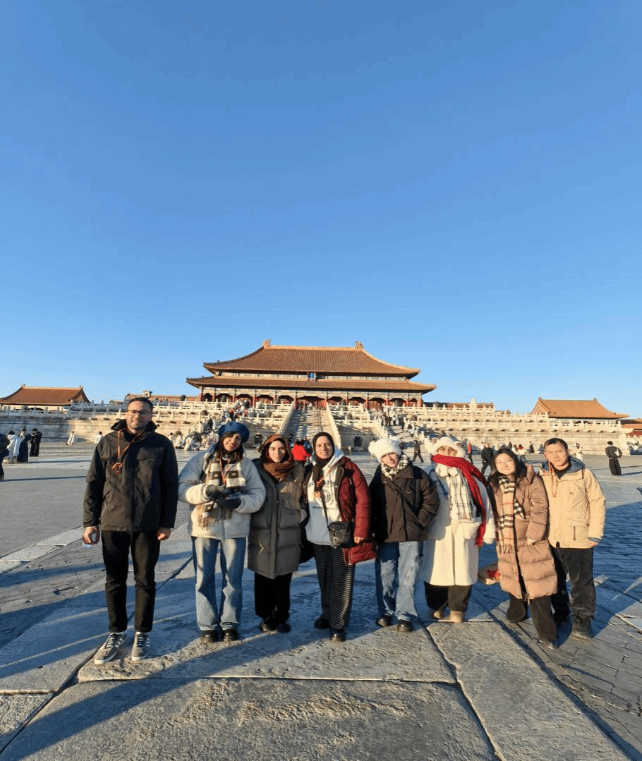 12月29日,冬令营前往北京,先后探访颐和园与天坛。在颐和园的亭台楼阁、曲廊水榭间,师生感受皇家园林“虽由人作,宛自天开”的造园艺术;在天坛的圜丘、祈年殿等礼制建筑前,师生体会古代帝王祭祀天地的庄严氛围与中华古建的工艺精髓。随后,师生漫步前门大街与老北京胡同,灰砖灰瓦的院落、叫卖声中的市井烟火,使其感受到北京传统与现代交织的城市肌理。次日,冬令营来到中国国家博物馆与故宫博物院。中国国家博物馆丰富的馆藏资源,让师生们领略了中华文明的发展历程;在故宫,红墙黄瓦的宫殿群与海量文物瑰宝,让师生们深度沉浸于中国古代皇家文化与历史底蕴之中。