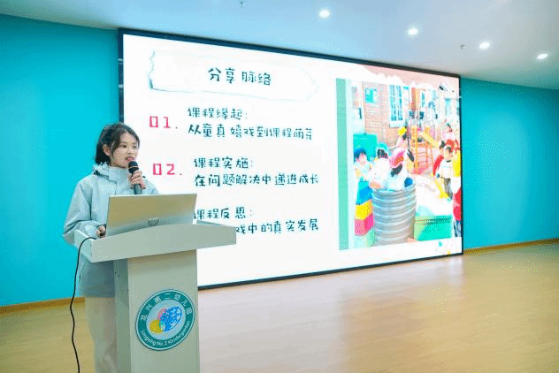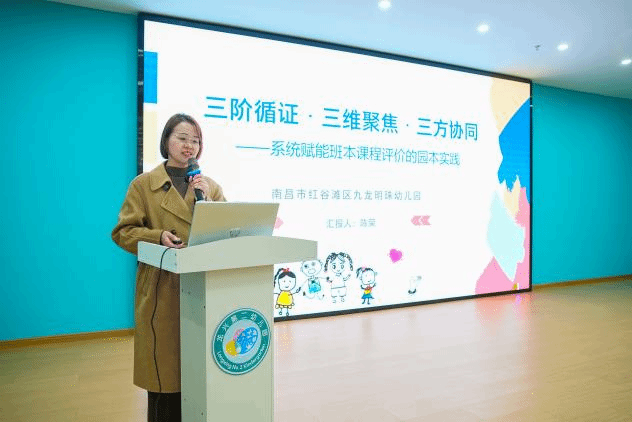 三场园本实践分享依次展开,呈现导航系统在真实教育场景中的落地成效。红谷滩区九龙明珠幼儿园陈荣老师以“三阶循证・三维聚焦・三方协同——系统赋能班本课程评价的园本实践”为题,分享该园通过“理论共建+教研推进”双轮驱动,构建课程全周期动态评价体系的探索;王澄老师以小班课程《地鼠总动员》为例,讲述如何借助系统工具让评价引领游戏自然生长;临江第二幼儿园杨林慧老师围绕大班课程《“棋”思妙想》,展现工具支持下幼儿学习有迹可循、教师持续成长的良好样态。