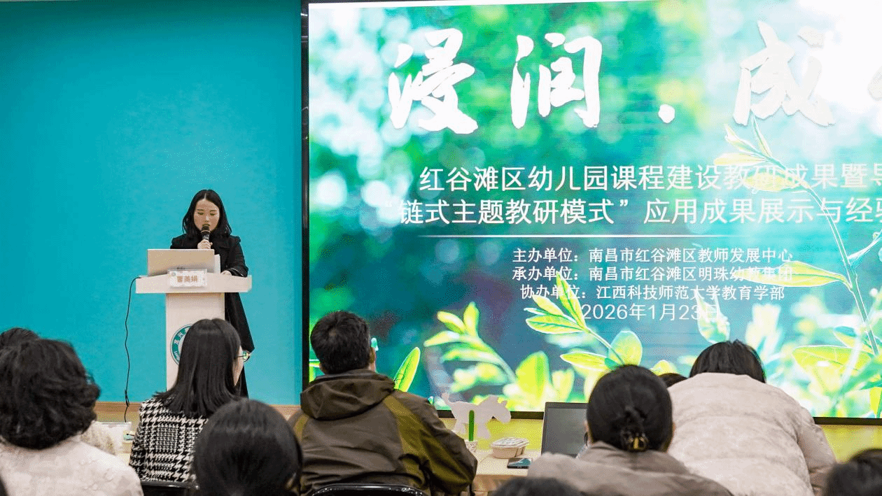 1月23日下午,由红谷滩区教师发展中心主办、明珠幼教集团承办、我校教育学部协办的“幼儿园课程建设教研成果展示与经验交流活动”在红谷滩区龙兴第二幼儿园举行。